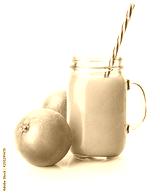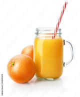 Freshly squeezed orange juice in glass mason jar with straw. Fresh orange fruits. Natural organic drink for healthy eating and healthy lifestyle. Isolated on white bckground. Clipping path included.