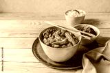 Thai pork & peanut curry with baby corn, coconut milk, peanut butter, coriander served with jasmine rice