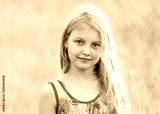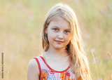 Portrait of little cheerful girl in a meadow