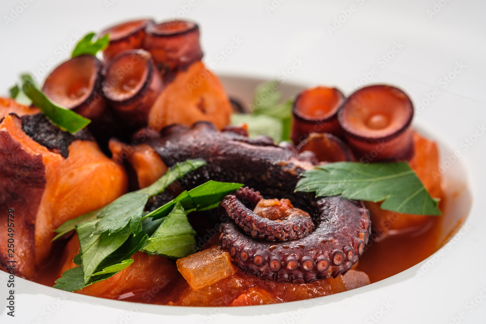 Krake Tintenfisch geschmort mit Petersilie