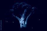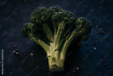 Fresh raw green broccoli on a black stone table background. Healthy food photography