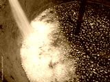 red ripe coffee cherry washing, cleaning, floating and selecing in coffee processing