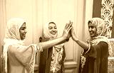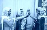 Happy Arabian women stacking hands together outdoor - Young Muslim women having fun and in the university - Concept of empowering, people, religion and team work