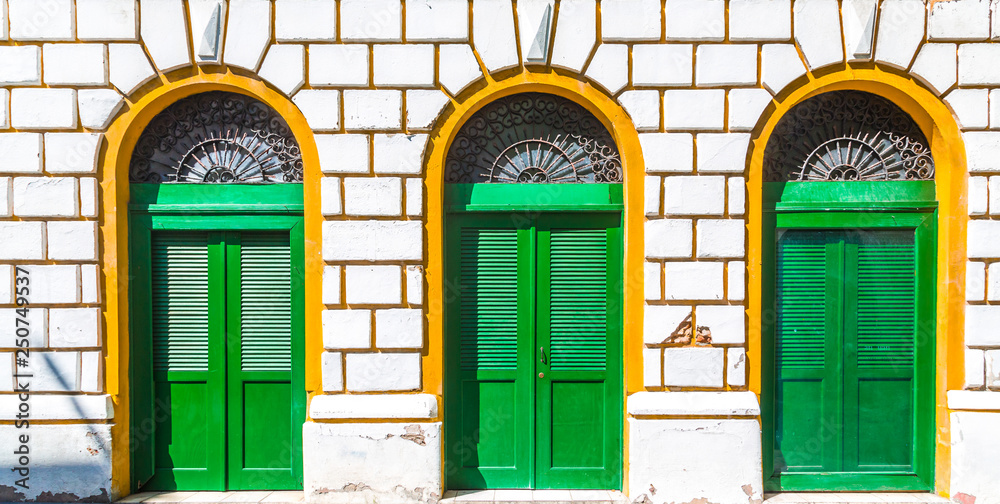 A colorful odl building on the narrow streets of Old San Juan, Puerto Rico