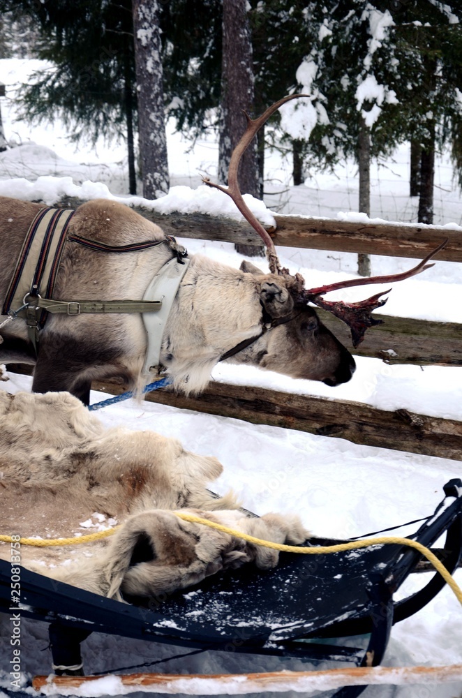 Laponie finlandaise : Ferme de rennes dans la campagne aux alentours de Levi