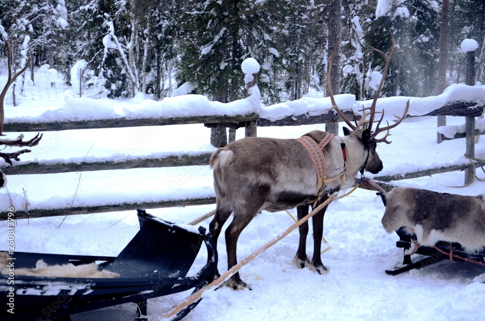 Laponie finlandaise : Ferme de rennes dans la campagne aux alentours de Levi