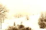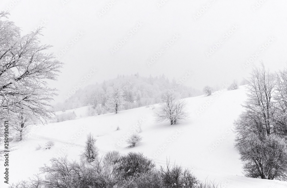 Snow mountain field landscape.