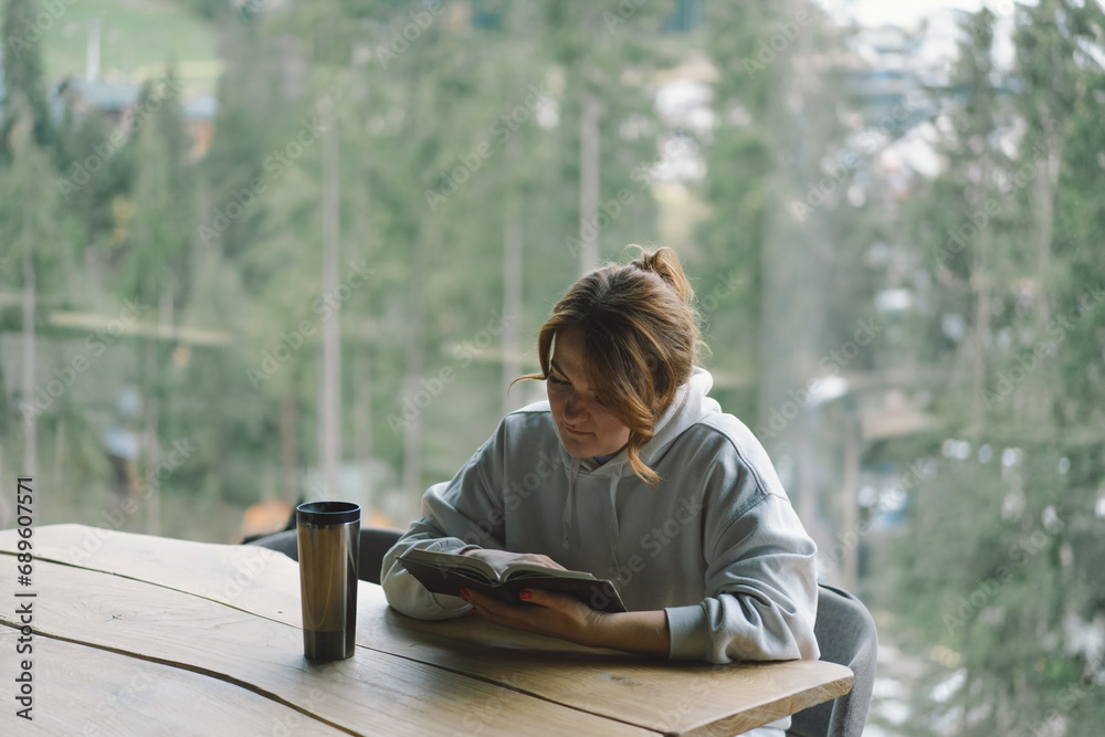 view on the mountain scenery through the viewfinder of the old camera photo. Photographer of the old school takes on a retro film camera