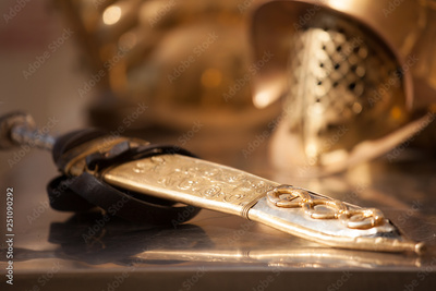 roman golden helmet and sword of ancient world