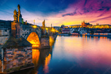 Majestic medieval stone Charles bridge at sunset, Prague, Czech Republic