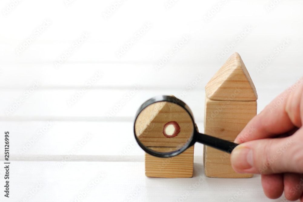 inspection of parts of the house with a magnifying glass in hand. cozy real estate