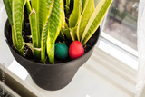 Painted Easter eggs hidden in a plant in a home, ready for the easter egg hunt traditional play game