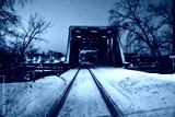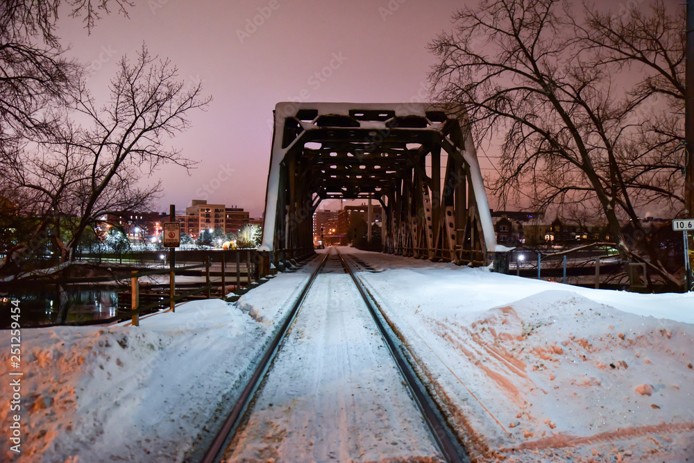 railroad bridge at night in the city