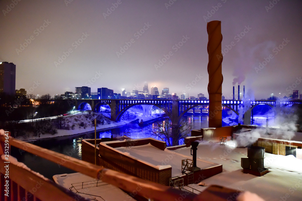 skyline lights at night in winter