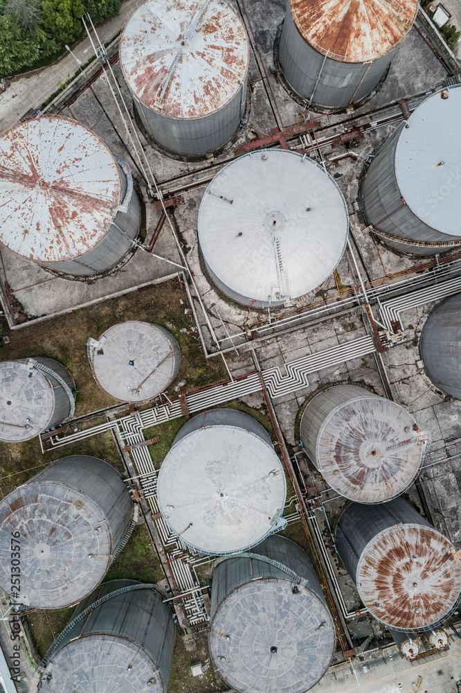 aerial view of industrial buildings in abandoned factory