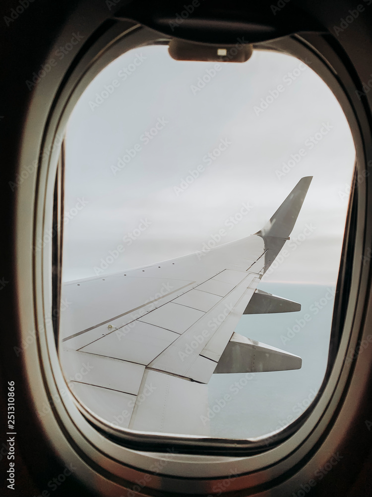 Wing of plane seen through window