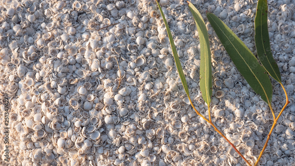 Small Shells and Gum tree Leaf Still life