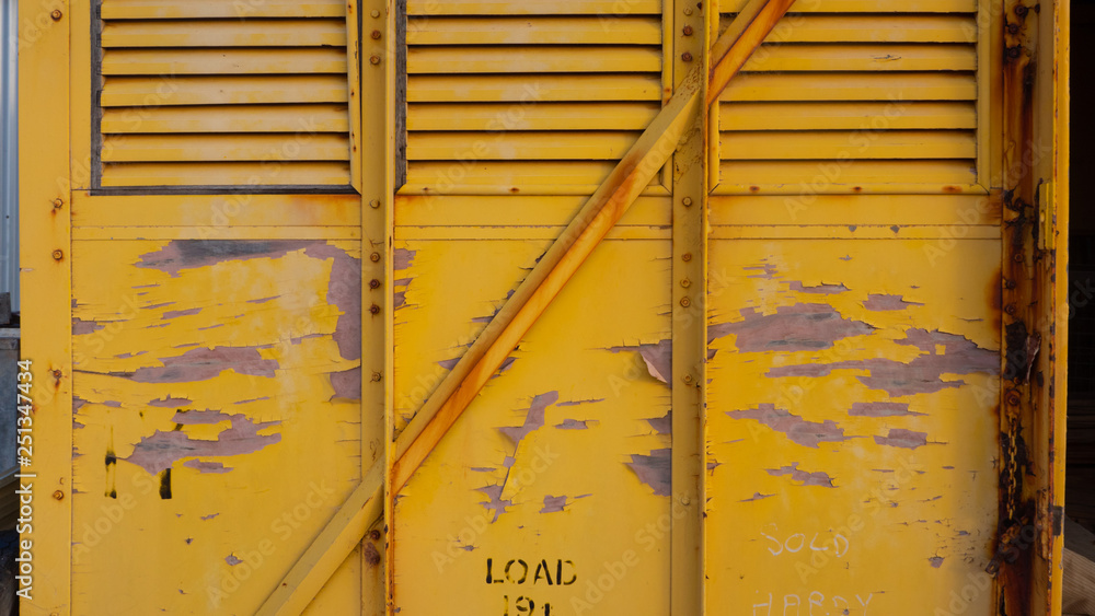 Yellow peeling paint texture background, grunge, full frame, copy space