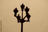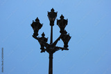 Street lantern historical classic old fashioned black lamppost against blue sky background. Outdoor park scene with simple old lantern and empty blue sky copy space background