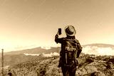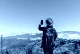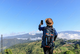 young asian women backpack tourists checking signal 4g gps and map on smartphone on the mountain and mountain fog clear sky background