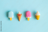 Ice cream on stick and in wafer cone abstract on blue.