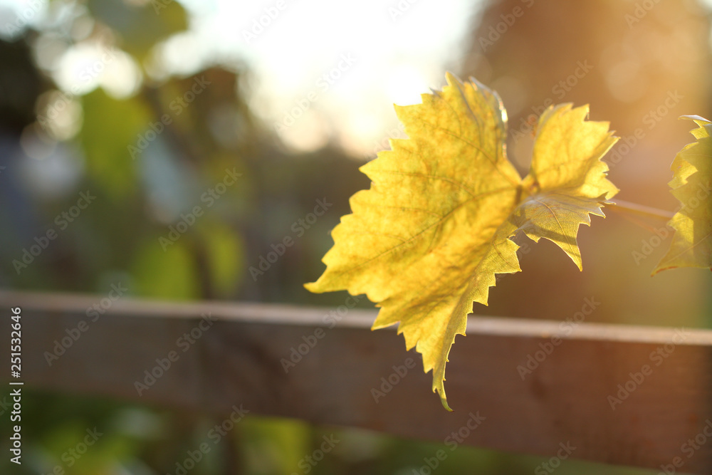 grape leaves shine through the sun at sunset. warming evenings for future harvest