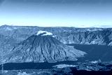 Volcano San Pedro at Lake Atitlan in highlands of Guatemala - Village Santiago and San Pedro you can see - Aerial View