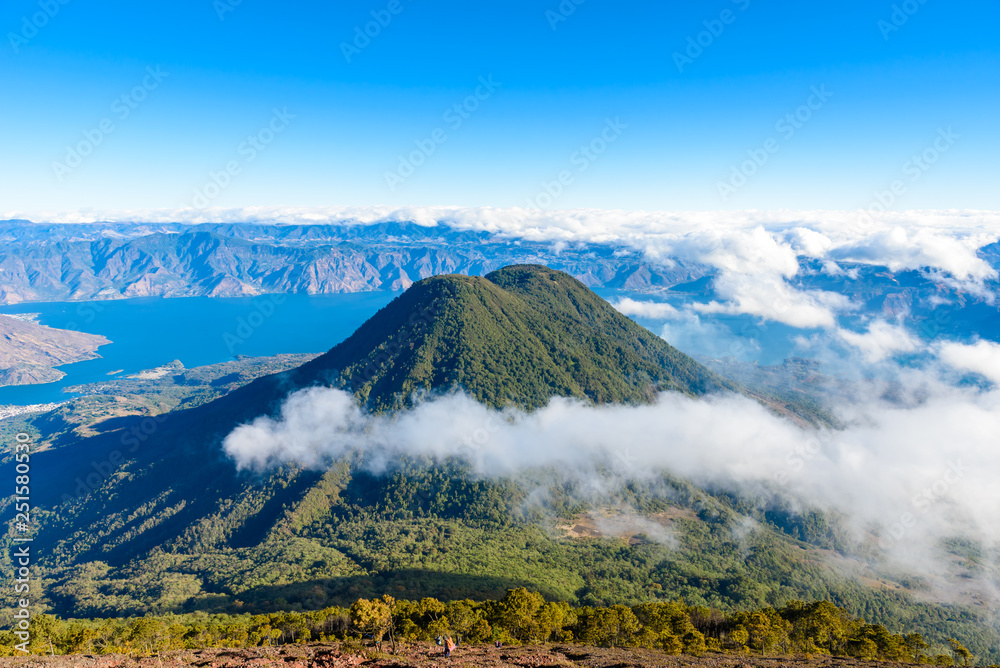 View to Volcano Toliman at Lake Atitlan in Highlands of Guatemala - Aerial View