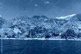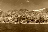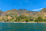 Shore of Santa Cruz la Laguna at Lake Atitlan in vulcano landscape of Guatemala