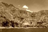 Shore of Santa Cruz la Laguna at Lake Atitlan in vulcano landscape of Guatemala