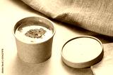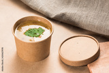 Soup in a disposable cup of craft paper