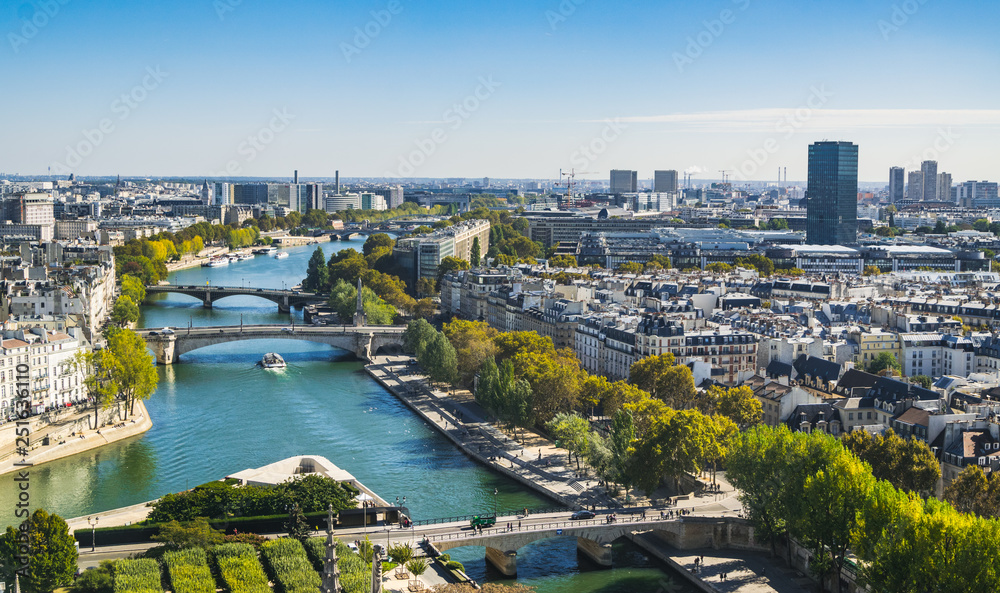 PARIS, FRANCE - 02 OCTOBER 2018: View on Paris from roof of Notre Dame cathedral