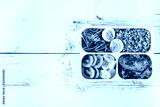 Lunch box with boiled eggs, oatmeal, avocado, micro greens and fruits. Healthy fitness food. Take away. Lunchbox. Top view
