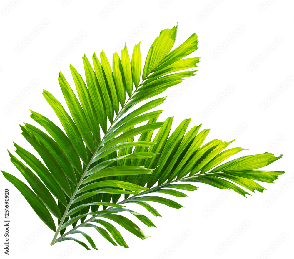 Green palm leaf isolated on white background