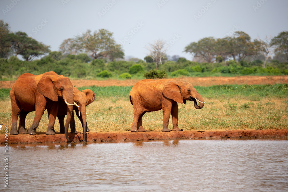 Family of elephants drinking water from the waterhole
