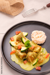 Lammcurry mit Currysauce Zucchini und Tomaten