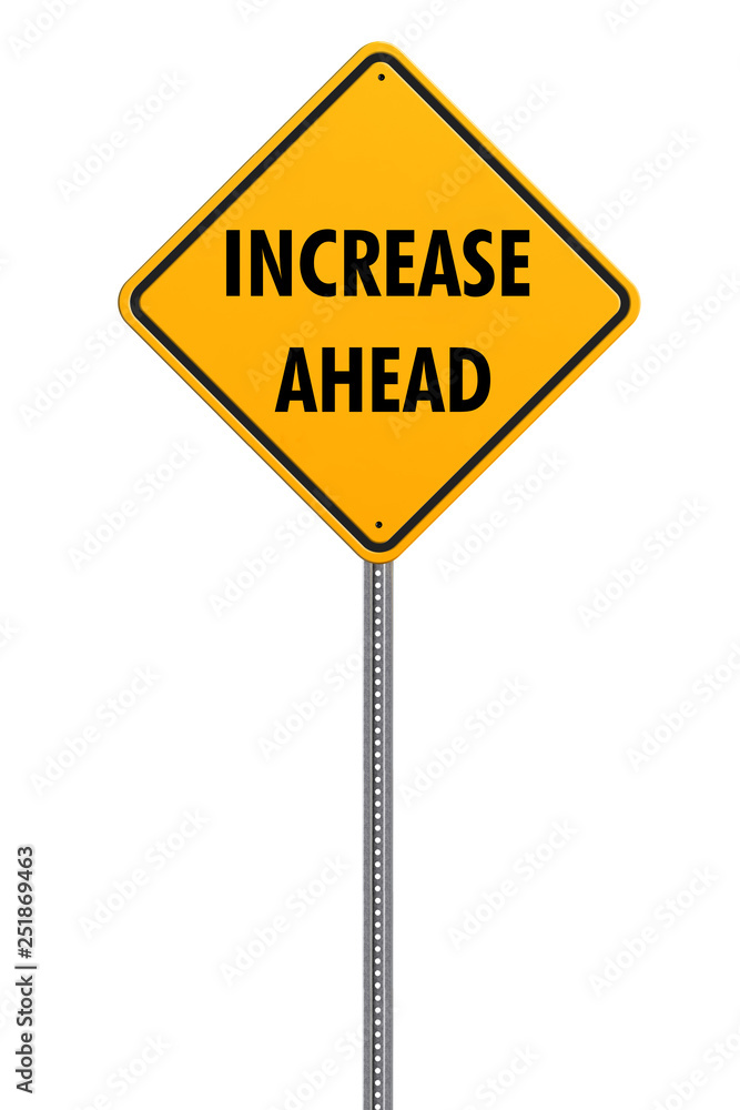 yellow square caution sign with text, increase ahead