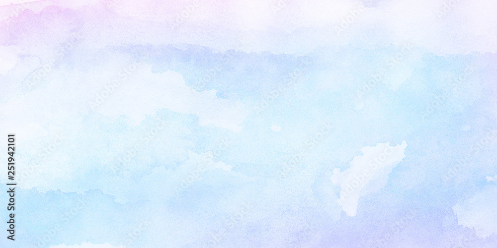 Fantasy smooth light pink, purple shades and blue watercolor paper textured illustration for grunge design, vintage card, templates. Pastel ink colors wet effect hand drawn canvas aquarelle background