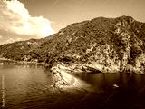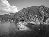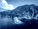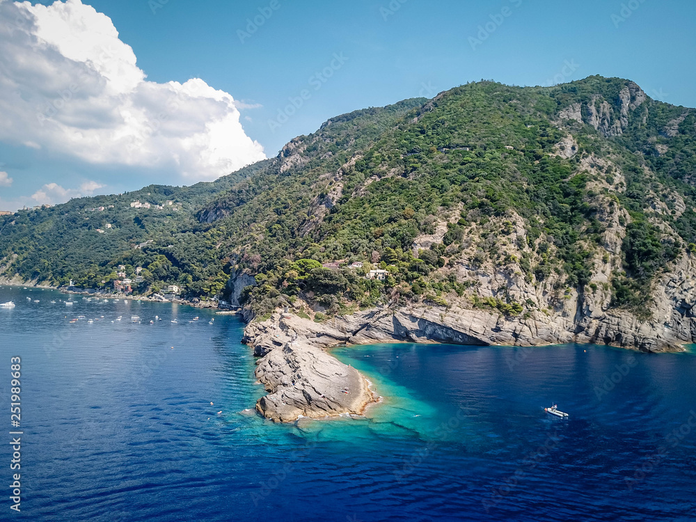 Aerial view of rocks and sea, Punta Chiappa, Portofino, Italy
