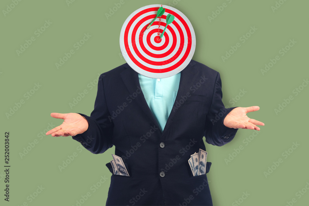 Business Man Target Against Their Faces with money banknotes in pocket.