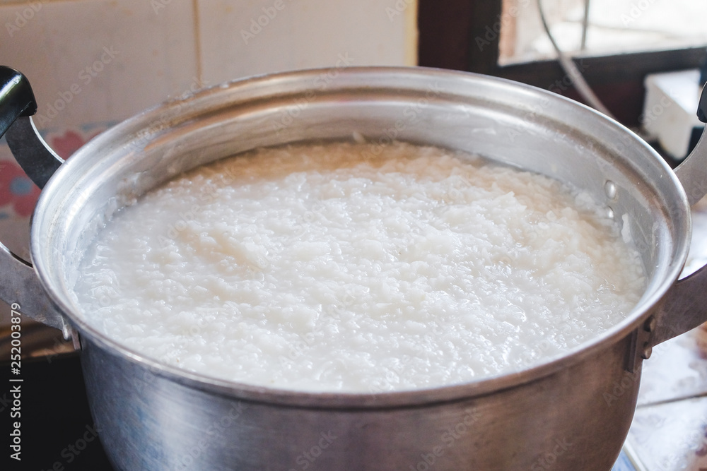 Home made congee from jusmin rice ,Asian rice porridge food.