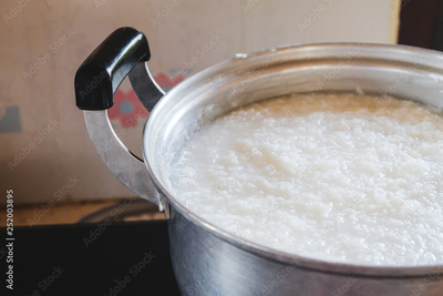 Home made congee from jusmin rice ,Asian rice porridge food.