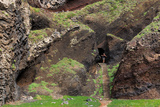 Senior tourist on a beautiful hiking path through the mountain on the north coast of Madeira at Ribeira Da Janela