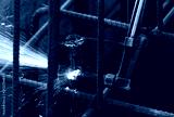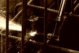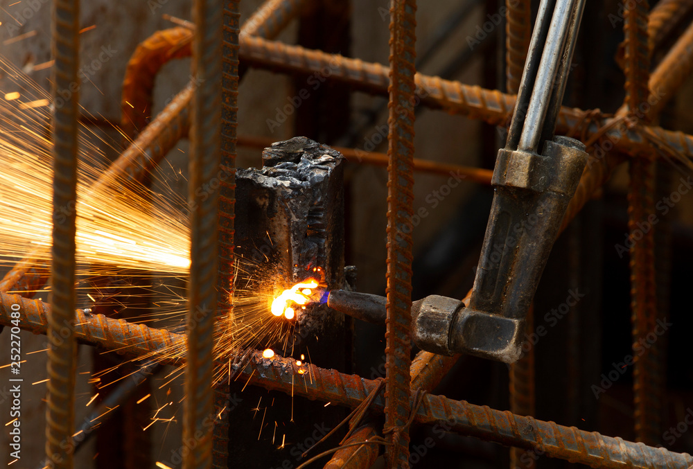 Welder worker perform cutting steel with acetylene torch.