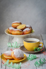 Bombolone - filled sweet yeast dough fried in oil, with a cream. Italian carnival doughnuts. Vertical image.