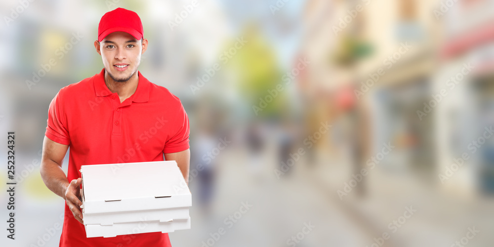 Pizzabote liefern Pizza Bote bestellen Bestellung Lieferung Beruf Mann Latino Stadt Banner Textfreiraum Copyspace