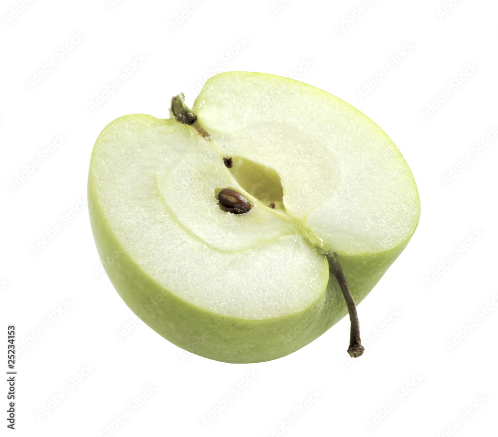 half of green apple close-up isolated