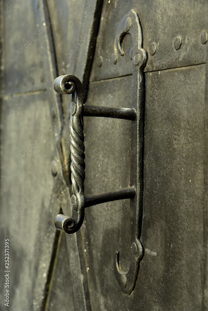 nahaufnahme eines antiken metalltores mit gedrehtem griff