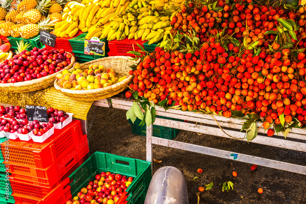 vente de litchis sur le marché forain de saint-pierre, île de la Réunion, Saint-Pierre, front de mer ravine blanche