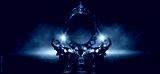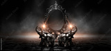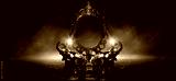 Mirror magical, fortune telling and fulfillment of desires. Golden elephant on a wooden table. Dark room, light effect. Beautiful statuette of an elephant on the background.